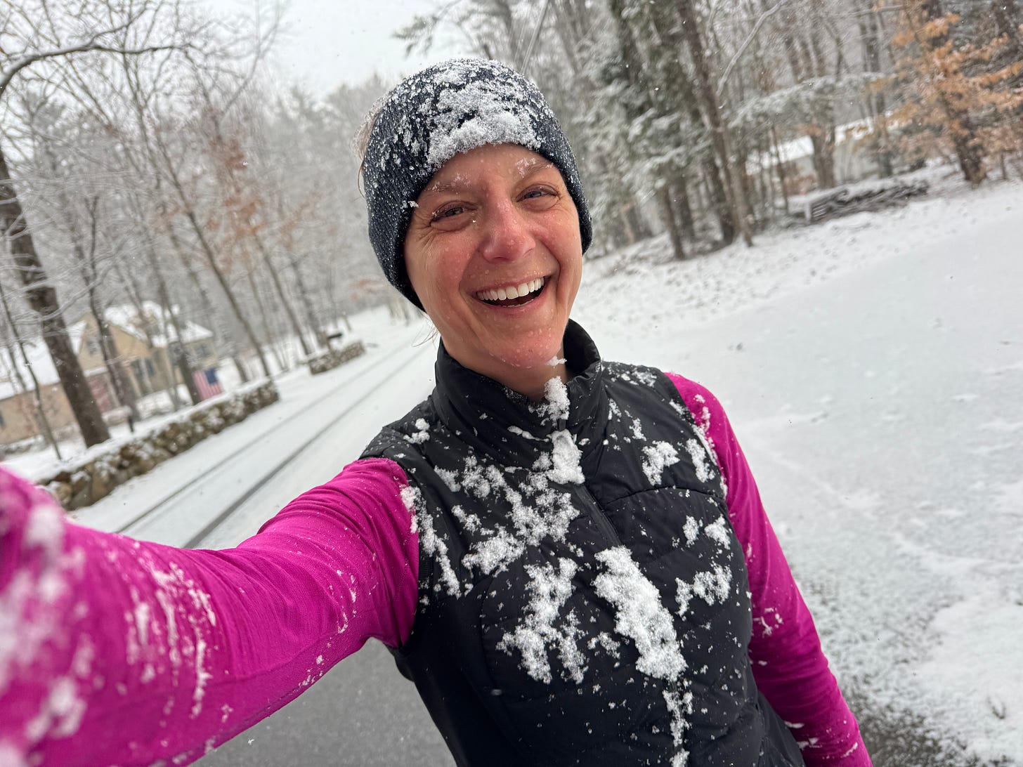 The year prior — 2024 — I was in Boston with two surgeries, four rounds of chemo, and a lot of hair loss behind me. I was still very much in the thick of divorce proceedings, which felt endless, and I was so stressed, every single day. I was happy to be at the finish line, but life beyond Boston was still pretty tough. My Crohn’s was flaring (obviously; see aforementioned stress), and a turkey flew into my windshield on the highway on the drive home. I was doing my best, and my best felt far from good enough.